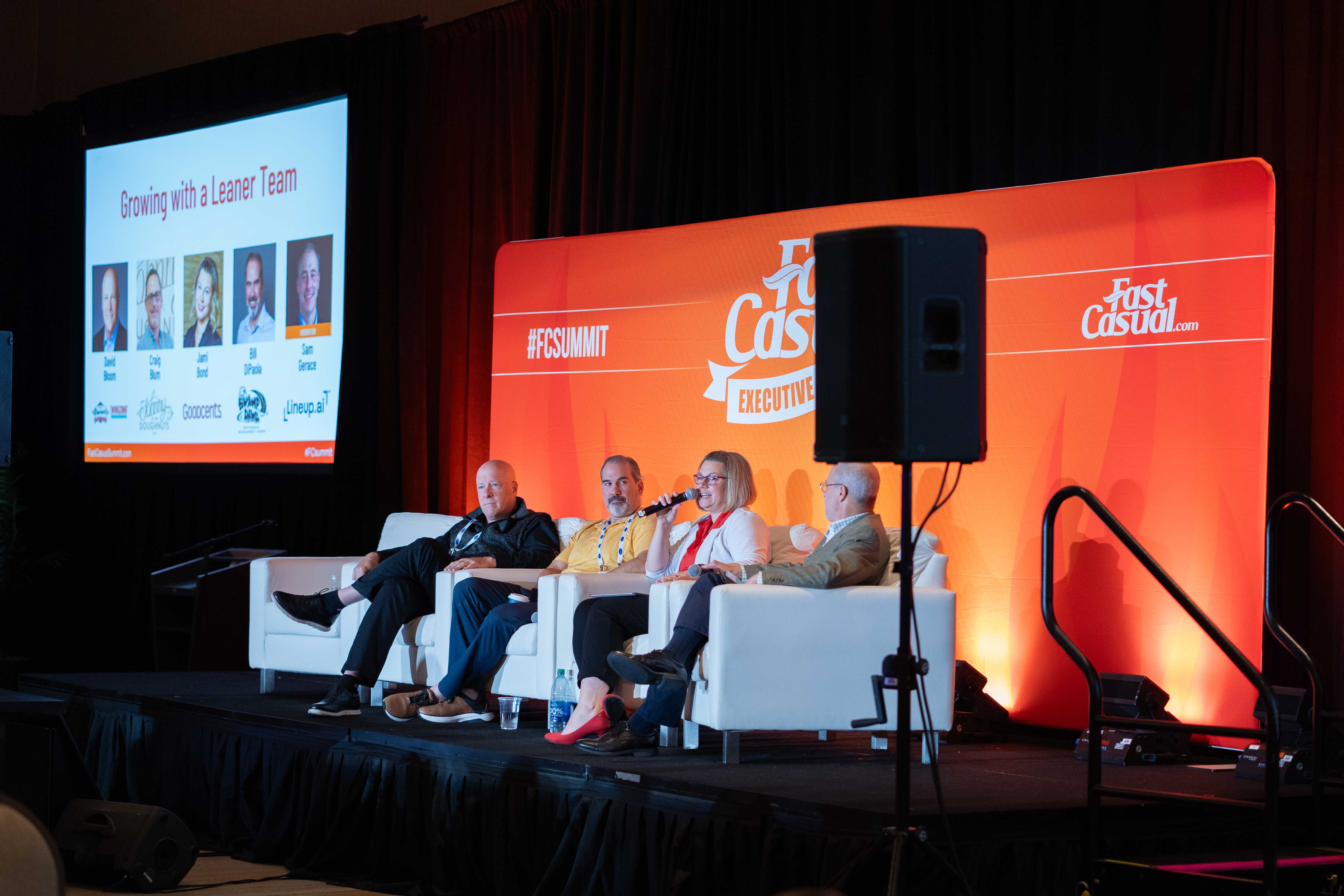 Jami Bond, Goodcents' vice president of Franchise Development, discusses strategy said during an October panel at the annual Fast Casual Executive Summit in Louisville. Also pictured are (from left) David Bloom, CDO of Capriotti's & Wing Zone; Bill DiPaola, president and COO of Swamp Dawg and Sam Gerace, CEO of Lineup.ai. Photo: NMG |